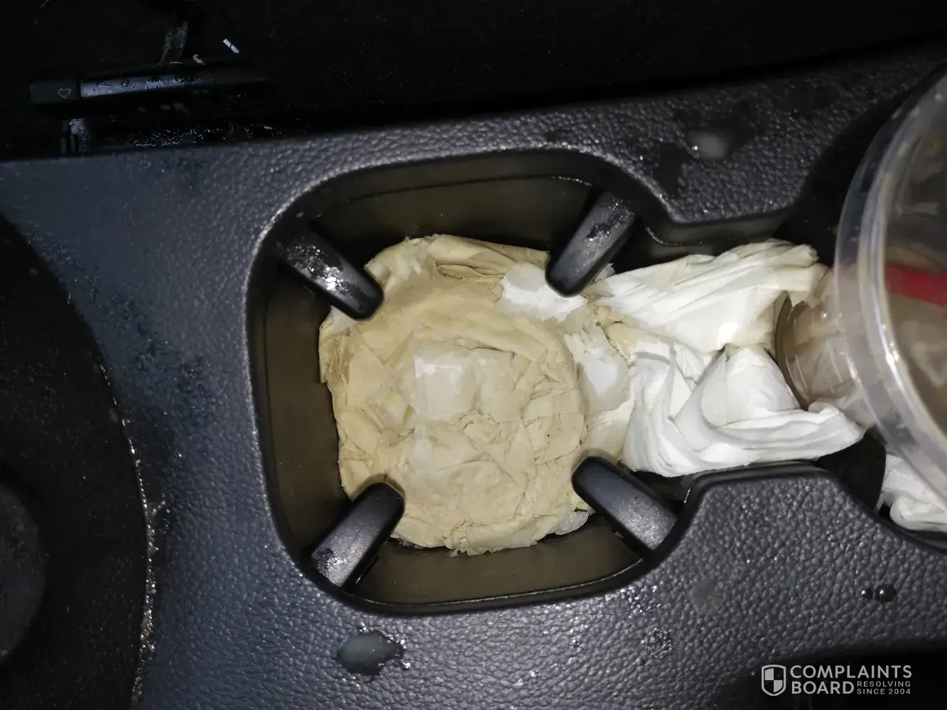 I wish to bring to your attention that I had purchased an Ice cap. . For a second time I have had a mess in my vehicle not just in the cup holder. The first issue was due to the cup having a slice down the side and it leaked out. Today the lid was not on it correctly and when i went to pick it up from the side the lid came off and went everywhere. I now have to have my car professionally cleaned. The photos are from today.