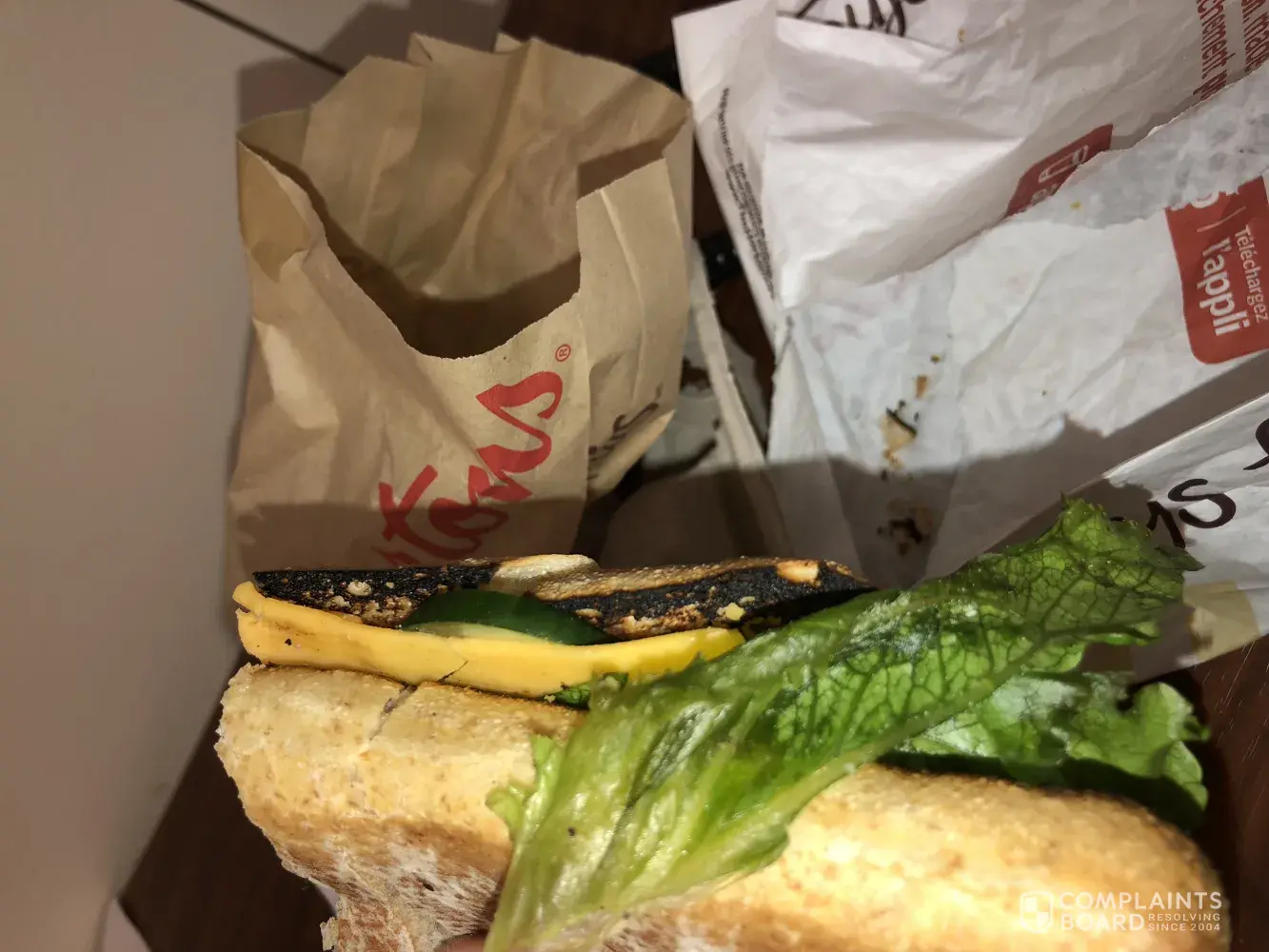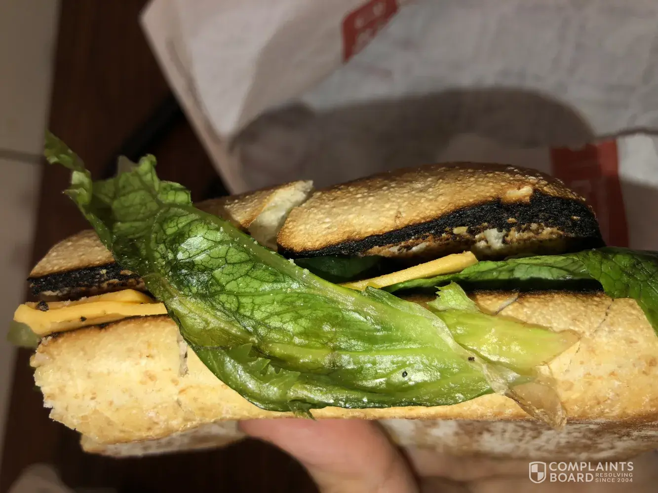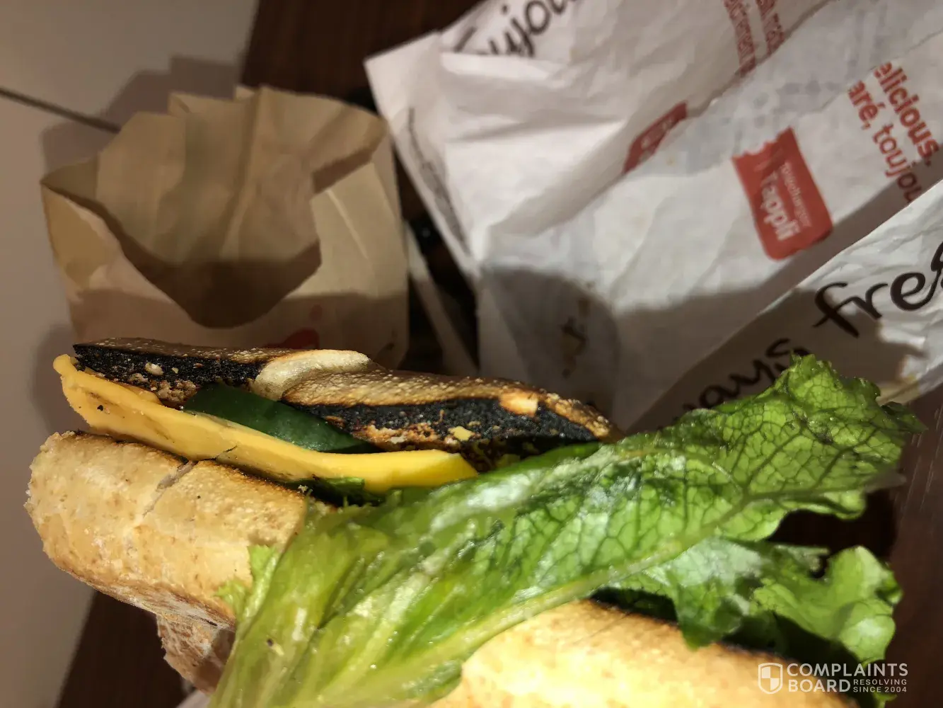 I bought a combo from Tim Hortons. The sandwich was burned and the veggies were soggy. I didn't have time to check my food at tims so when I came to the office and looked at it, I was disappointed. I have a few pictures from the food... if you want I can send them to you.