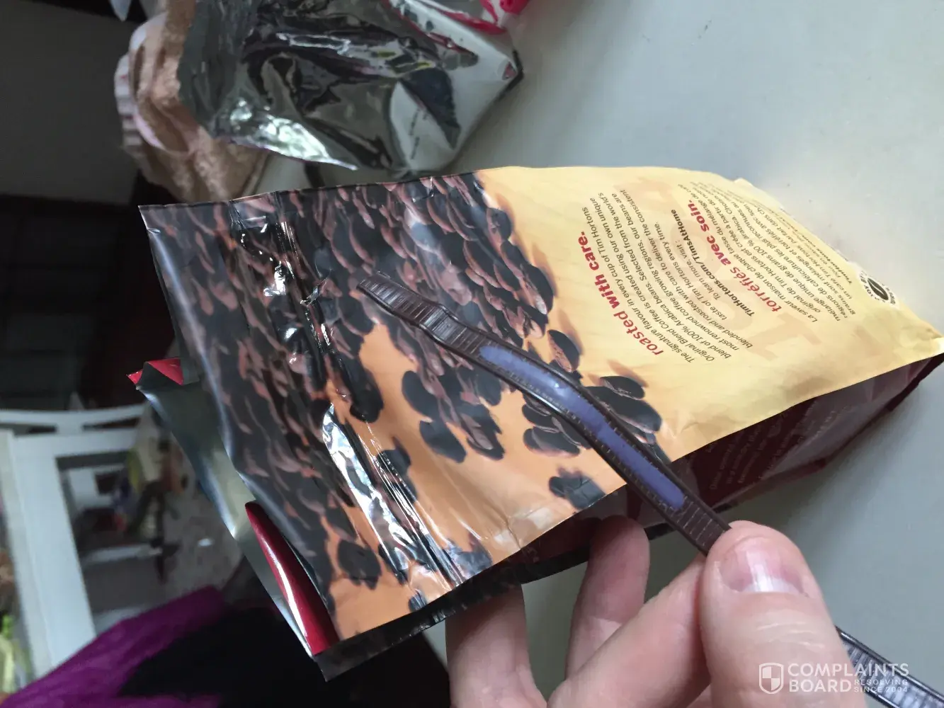 I've been buying your 300g packets of fine grind coffee for yrs, today i opened a new pack and the flawed seem tore through and created a hole in the bag. The flat wire reseal also came off on its own so i am forced to transfer the coffee into a lock/lock container. I hope you can replace this flawed pack for me. I live in China.