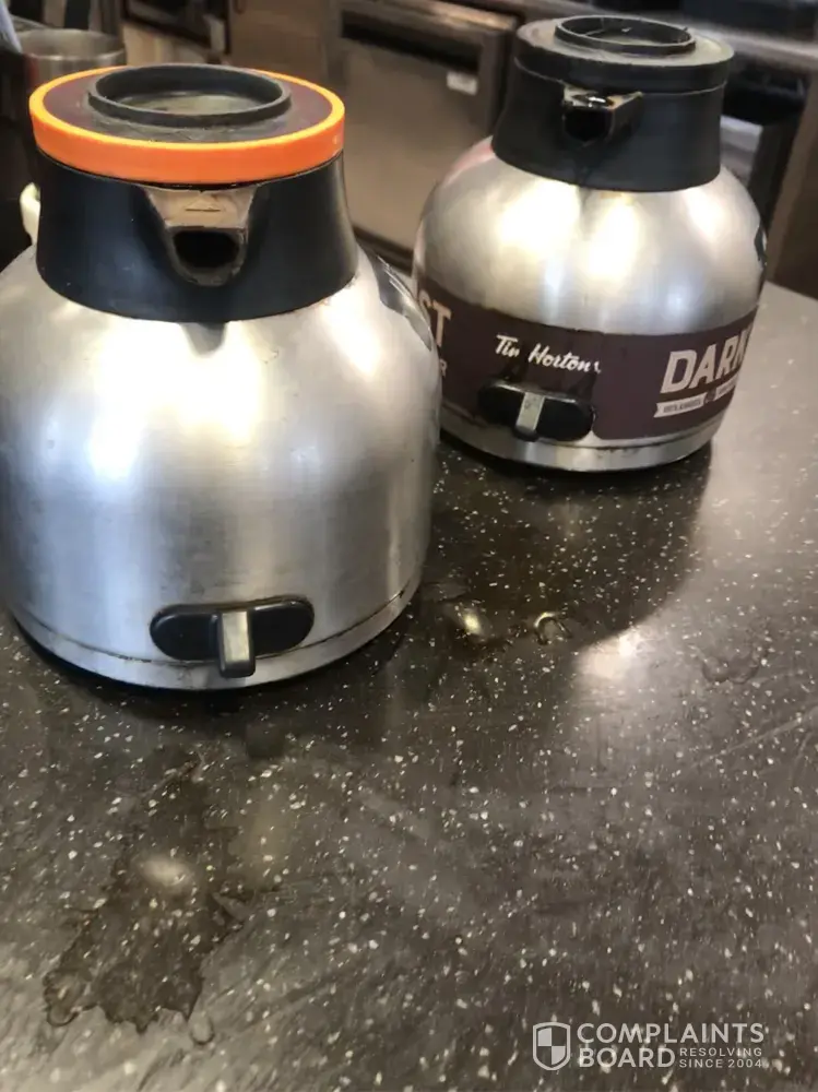Worst coffee lids in the world! Another trip home to change my shirt after leaky Tim Hirtons coffee cup! This has been an issue for years! Why can't a big outfit like TH fix this problem? Even the local gas station has some lids that don't leak...unbelieveable