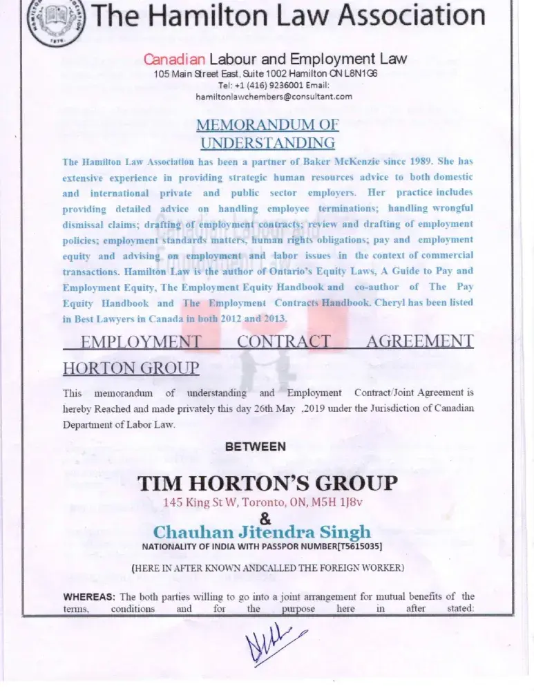 I have received job offer letter from Tim hortons group canada, pls check and confirm whether it is fake or real/
