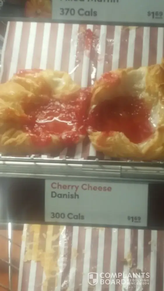 I was in your Brampton location ordering cofffee and was about to oder a Cherry Cheese Danish, but the ones that were displayed were not at all pleasing to look at, so I left the store with ordering anything. Please Tims, I like the cherry Danish but not looking like the attached photo.