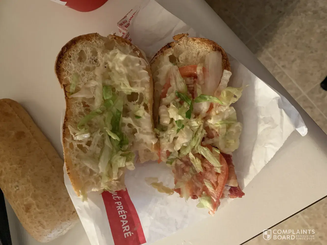 I was just at Tim Hortons by my house and ordered a BLT sandwich on brown with extra Mayo. The sandwich came on the wrong type of bread with only one piece of bacon and one little piece of shredded lettuce. I am very disappointed in this location several times the coffee is watered down and the food is not up to Tim Horton standards.