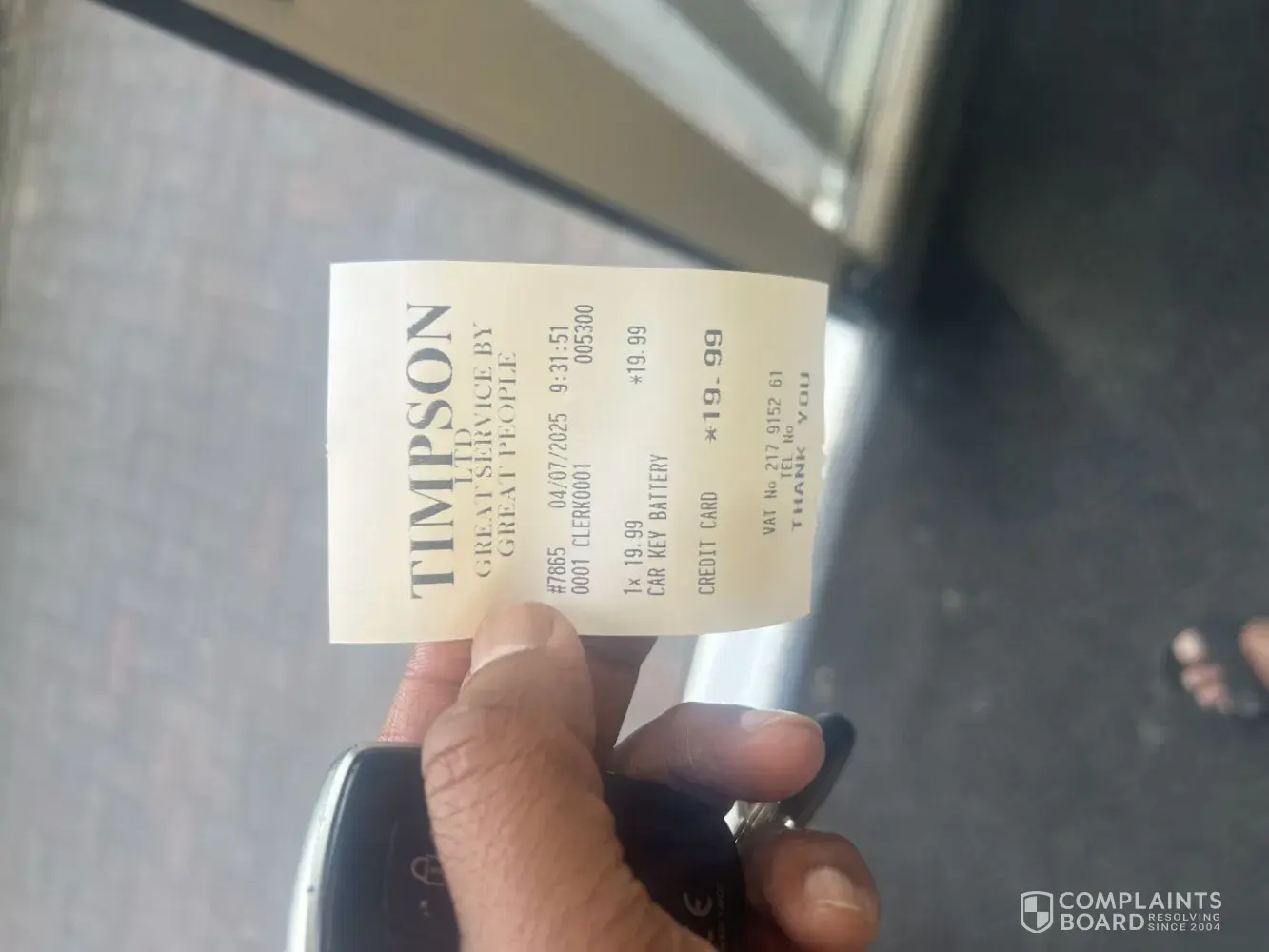 I'm writing to express my disappointment with the service I received at your Lower High Street Tesco Extra branch. On July 4, 2025, I had my car key battery replaced by a colleague who informed me that it had a one-year warranty. I was told to keep the receipt as proof of purchase, and I was even offered the option to provide a picture of the...