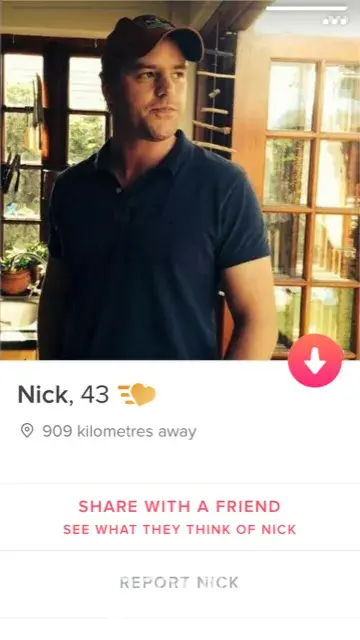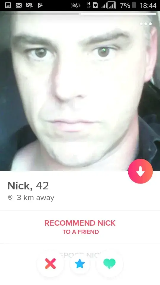 Hi. I would like to report a man, who I have since come to believe to be a fake. He has created apparently numerous tinder profiles (as well as facebook accounts), and is only on tinder to prey on women for his own pleasure. He is not on tinder for dating or any relationship, and I do believe him to be a hazard to society. He goes by the name, nick 42 and currently had 3 profiles.
