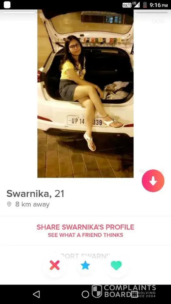 This is to inform you regarding my fake account. Id was never created by me, account name used on tinder swarnika bhargav age 21 it is been used by the user in ghaziabad (U.P) India. it is ridiculous to see my fake account on your site one of my friend told me about this fake account. I don't even use tinder and somebody has used my photos from my Instagram aaccount . Kindly please block this account, if possible please give me details of that fake account user. Please inform me as early as possible. [protected]@gmail.com