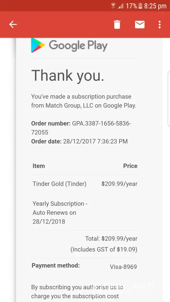 I paid a six month subscription for Tinder Gold and this was revoked from me on the 2nd of December (having only been subscribed for 2-3 weeks).