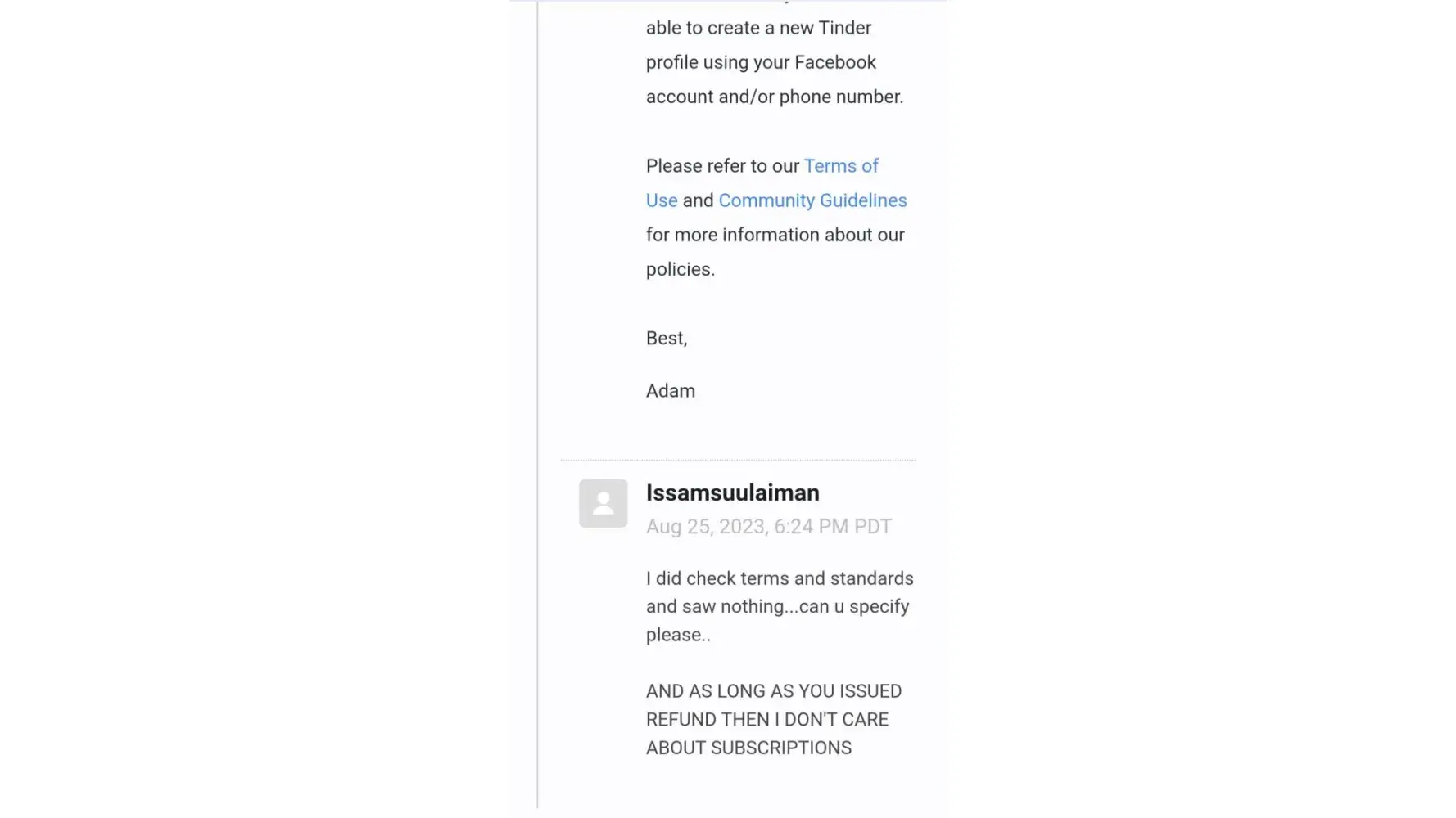 I have had a full refund for my money after sending the complaint to Google Play Services, however I really want to hold Tinder to account for this absurd display of behaviour which it seems they are taking out on so many users. I am going to keep enquiring, as although I am not in need of their service, not knowing why they banned my account is infuriating and unhelpful and Tinder refusing to tell me why is frankly pathetic.