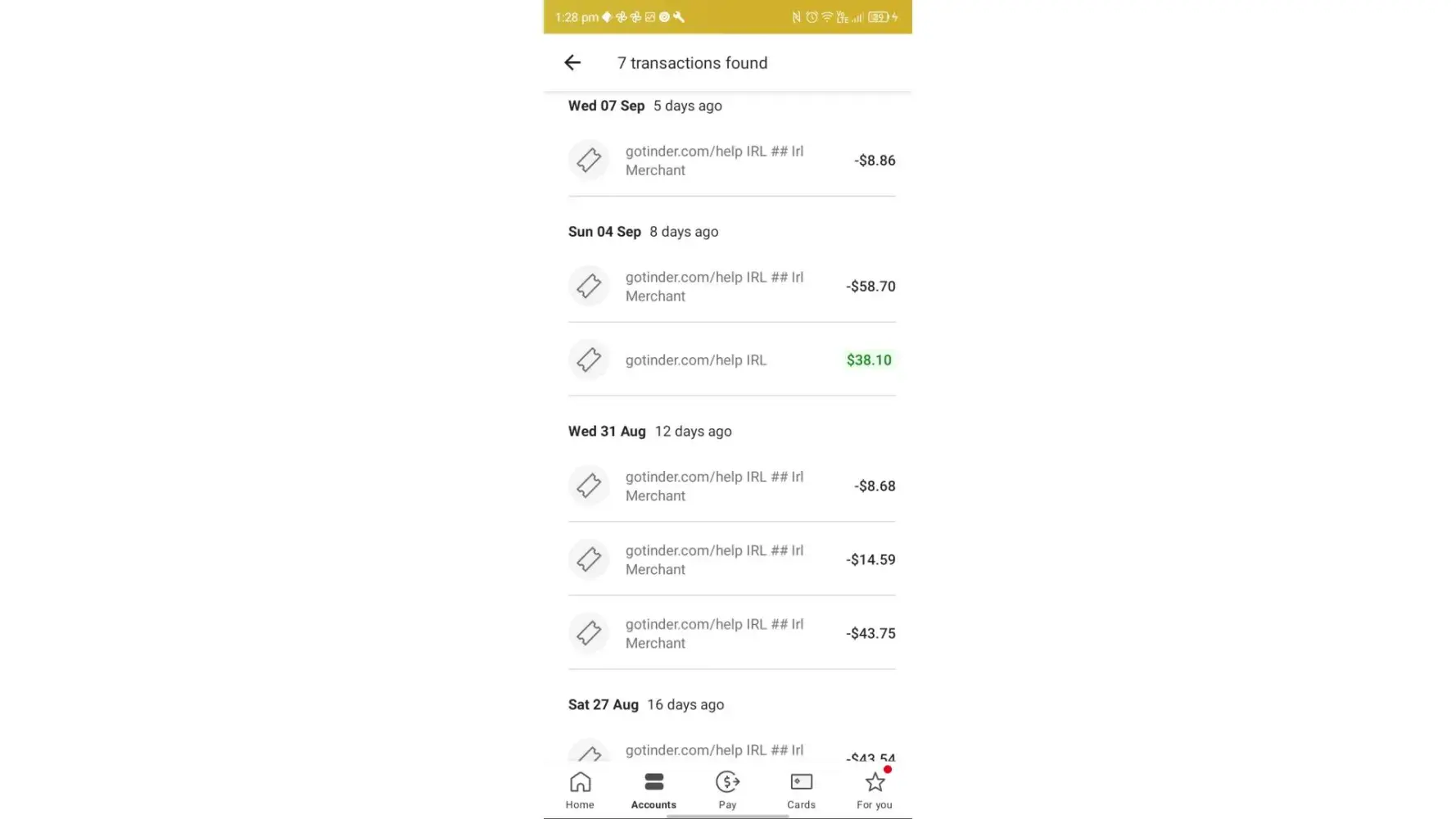account in the name of Raymond McFarlane Albury, Australia phone: [protected] email I use for Tinder is [protected]@hotmail.com