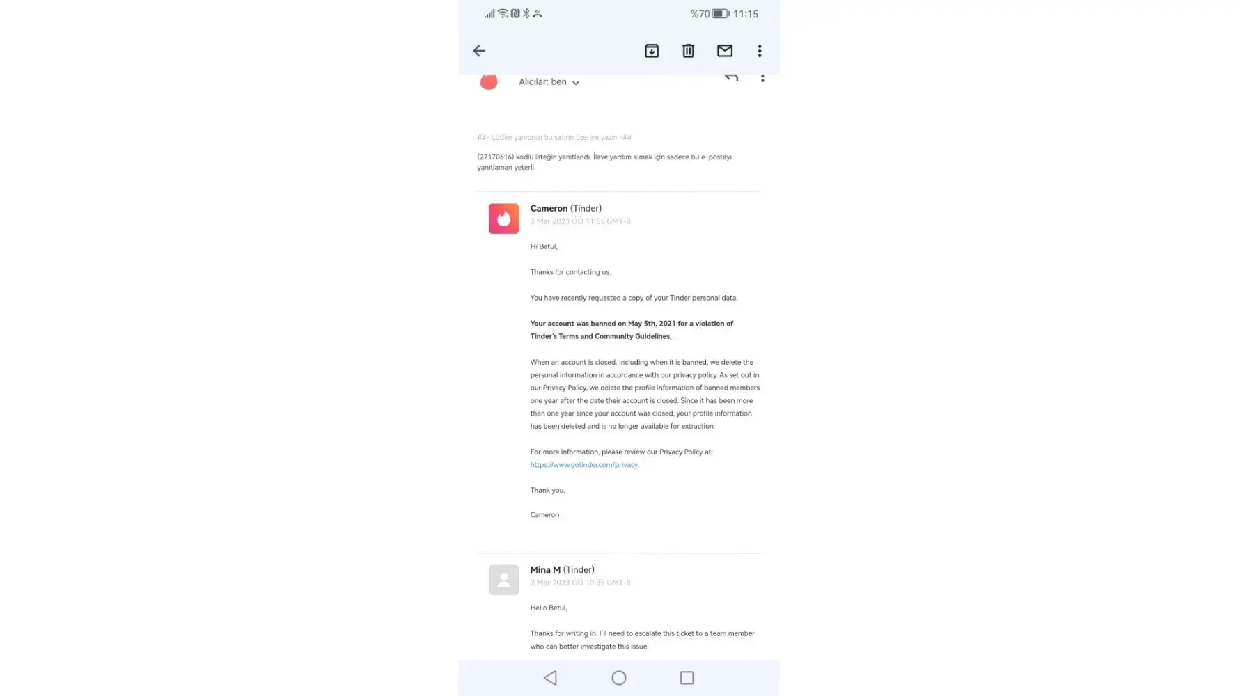 Tinder Hesap Yasaklanması