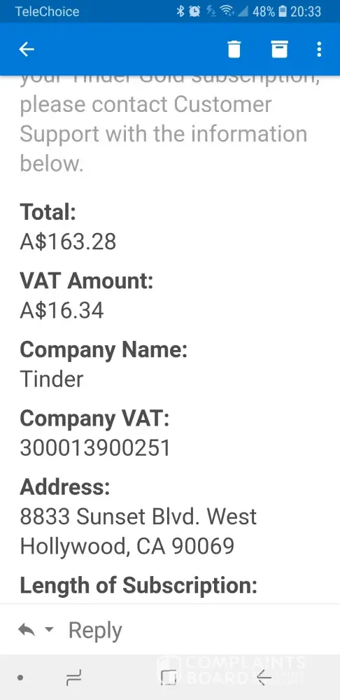 Dear Tinder I would like to complain in the strongest possible terms about my tinder account