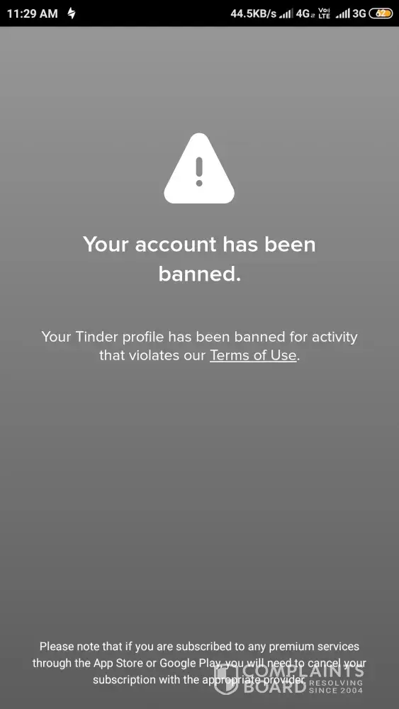 I was banned from tinder for unspecified user agreement violations
