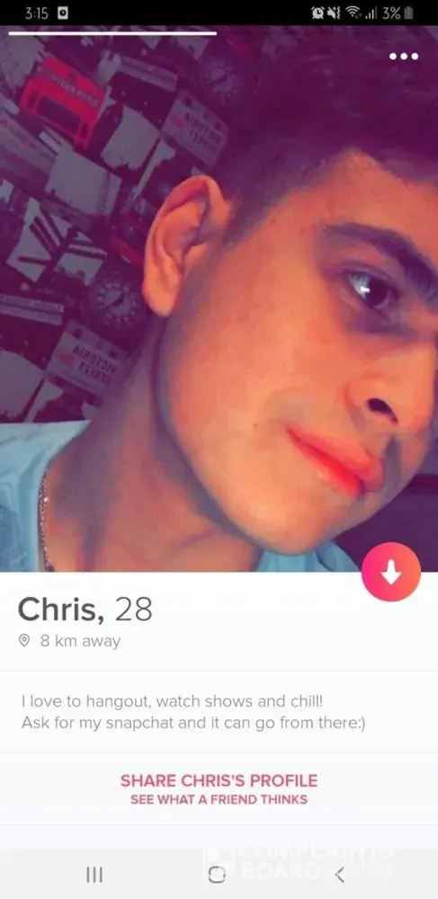 A guy contacted me on Instagram just now. We talked and he asked me about how far was my palace from his college. And I told him it was very far away and he said you said something else earlier. He claimed that he found me on tinder and we matched and we've talked on tinder but I don't have any account on tinder at all. The specific person who is using my pictures as a tinder account is also Telling people that I'm bisexual and more stuff about me. When the guy asked that fake person to give her Instagram, she gave the right Instagram and immediately unmatched with him. To conclude, someone has been using my pictures and info as a tinder profile. Please do something or let me know if I can do something about it.