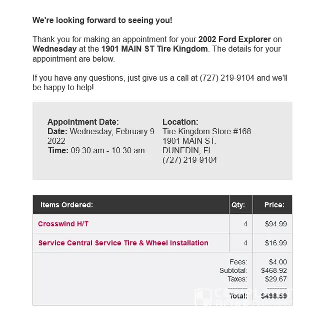 I scheduled an appointment with my local tire kingdom on military trail in Delray beach FL for Tuesday 3pm. I received a phone call from Eric at that location stating that even though I had an appointment which I aslo prepaid online, that they were booked and I had to reschedule. Eric stated that the online system of scheduling was not taking into consideration the appointments they book inhouse. In other words your system is not working. I had to reschedule my oil chg and tire rotation for Tuesday June 1st at noon. I'm very upset over this especially after purchasing 4 brand new tires from that location 5 months ago.