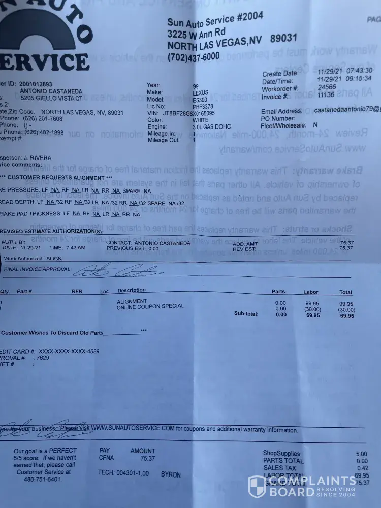 I take my car to fix alignment. and not fixing the alignment