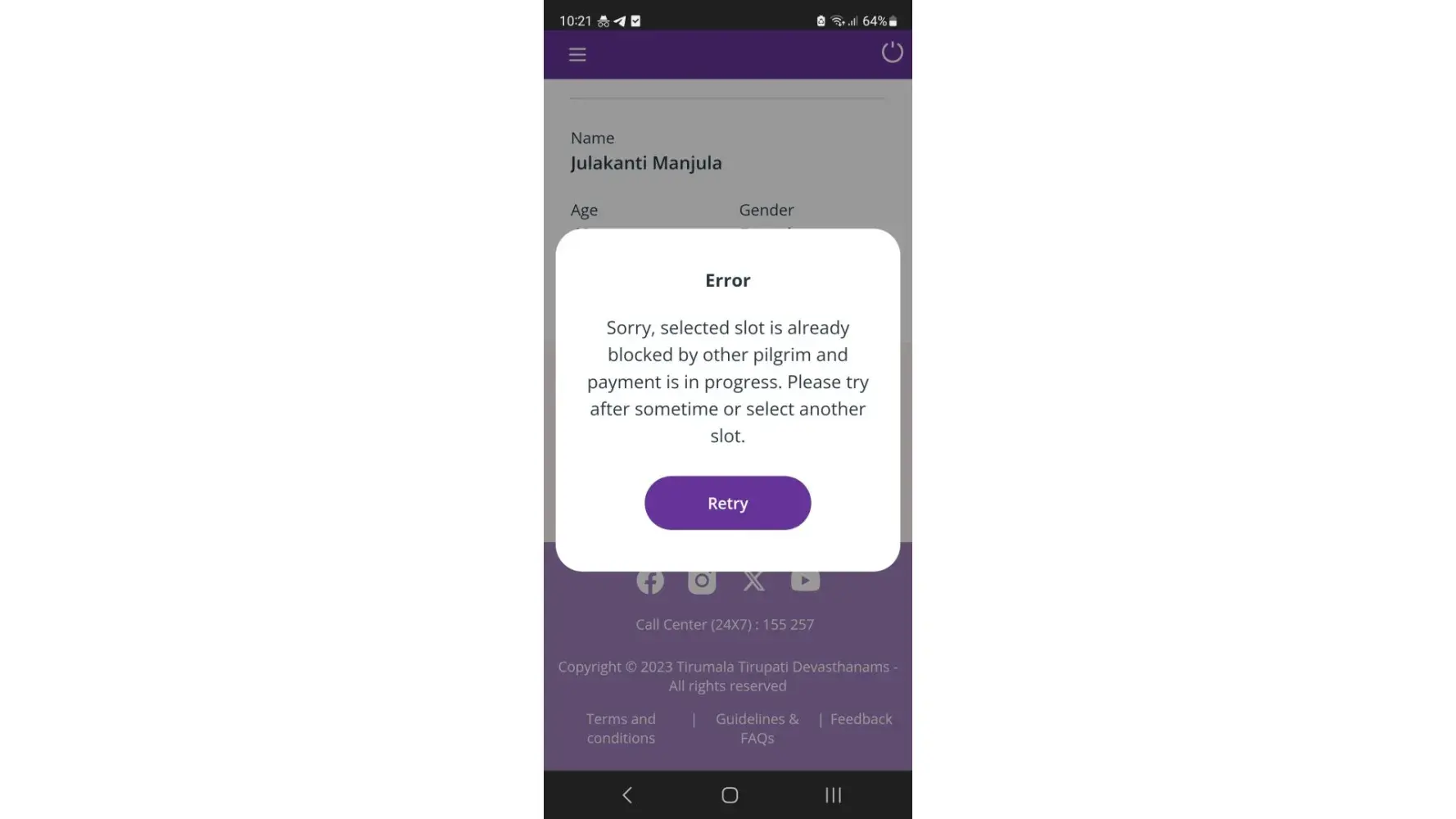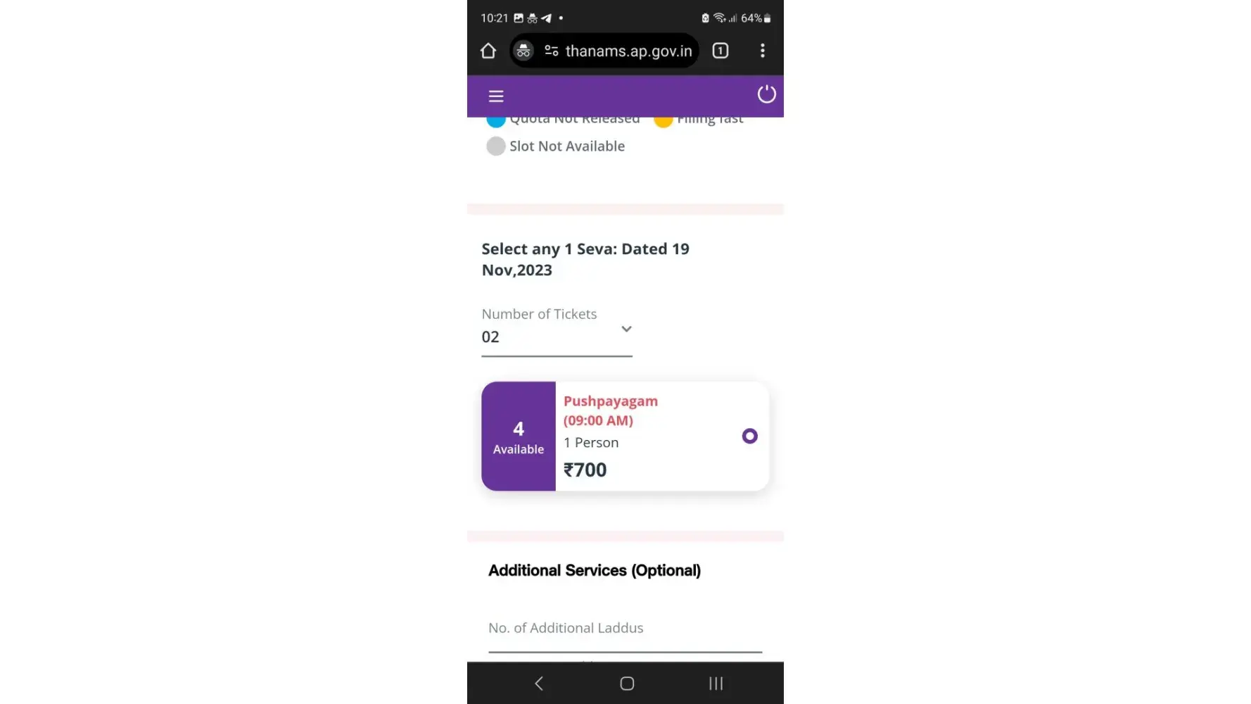 Today(04/112023) whwn i am trying to book online tickets for pushpayagam slot tickets.