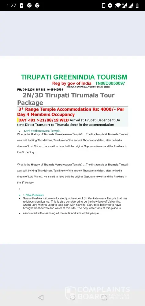 I booked Tirupati tour 2 night 3 days at Tirupati devashram with return flight tickets from Ahmedabad to Tirupati and Tirupati to Ahmedabad.