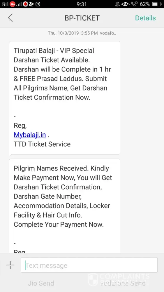 I have hereby attached a copy of the messages received and the booking website. Kindly look into the issue and do the needful.