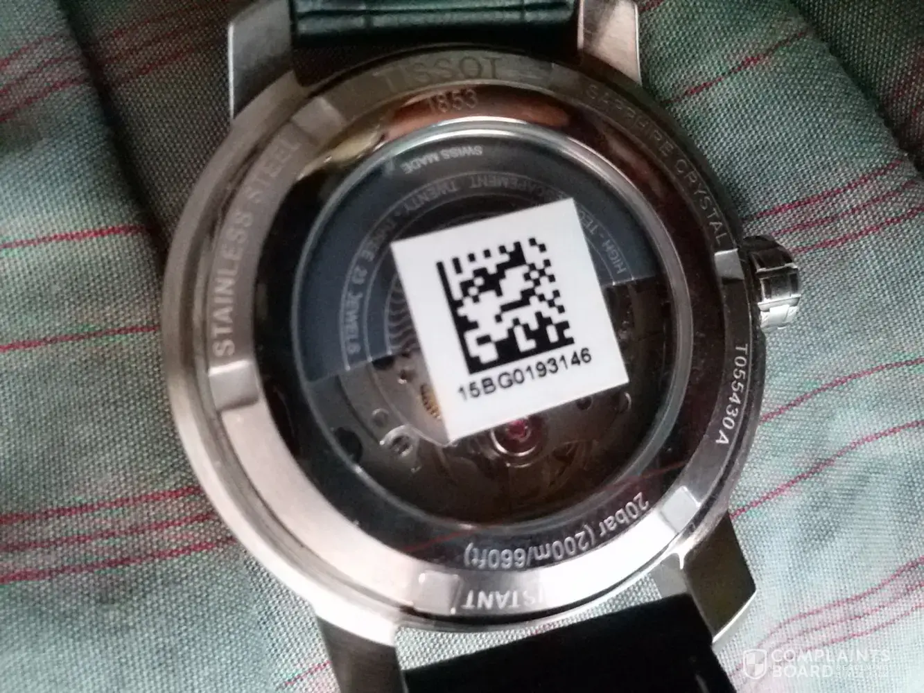 I now notice that the Serial Number is not engraved on the case back between WATER RESISTANT and STAINLESS STEEL, where it is supposed to be engraved. This space is empty. This can be seen from the picture uploaded. There is only a QR sticker which displays the serial number. I have written to the Dealer but there has been no reply. I have left messages on TISSOT website under 'Contact Us' but there has been no response yet.