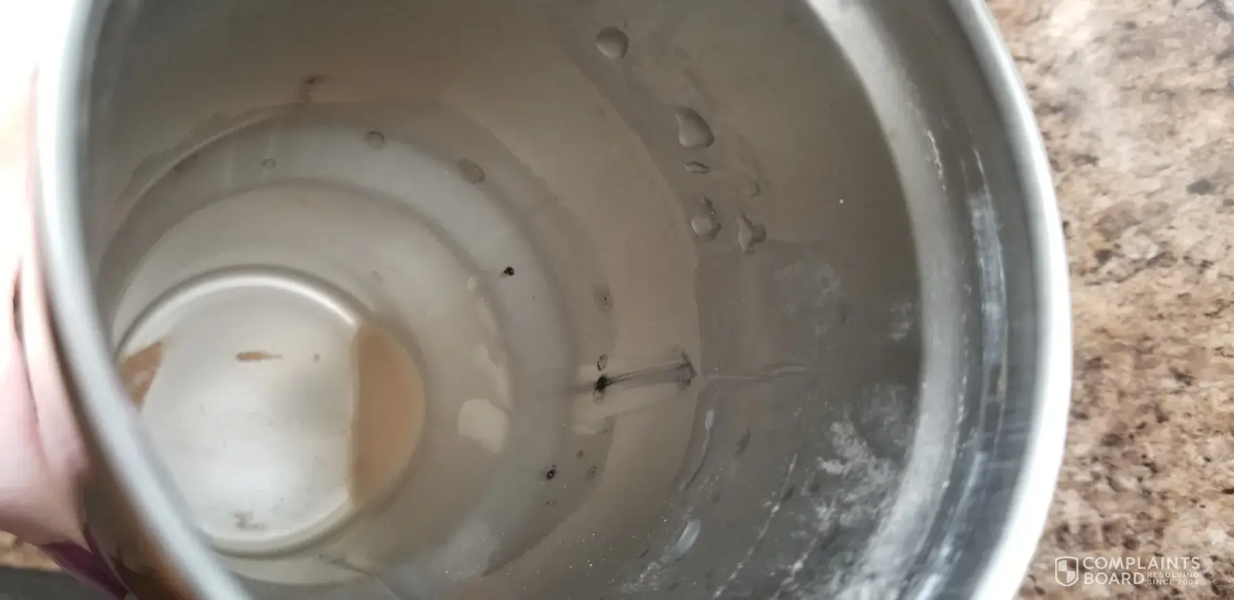 I bought this Wellness brand double wall steel tumbler cup last Christmas. I was drinking tea in my cup and after I was done I went to wash the cup out and noticed black spots inside the cup on the walls. After closer inspection I realized there were actually blobs of a black substance seeping through the walls of the cup and directly through the seam on the inside of the cup. I touched the spot and the substance wiped onto my finger and left behind a stain. I wash and dry the cup after each use and do not store the cup with the top on. I never leave liquid in it prolonged over 8 hrs, and never unless I am actively drinking from the cup. I'm very disturbed by this. I can not find any information on the Wellness company or manufacturer info. I want to know exactly what this substance is and if it is harmful to me. I will not be using this cup again and I will warn everyone I know to check their Wellness cups as well. I'm very concerned that I've been poisoned by heavy metals leeching into my drink, and possible mold contamination. This is absolutely disgusting and should never happen. I want answers. I need answers to have my health checked and to help others be safe.