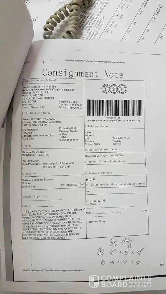 My complaint is: i purchase some mobiles from a manufacturer in china, he uses TNT to send me the mobiles, i never receive my mobiles till date..