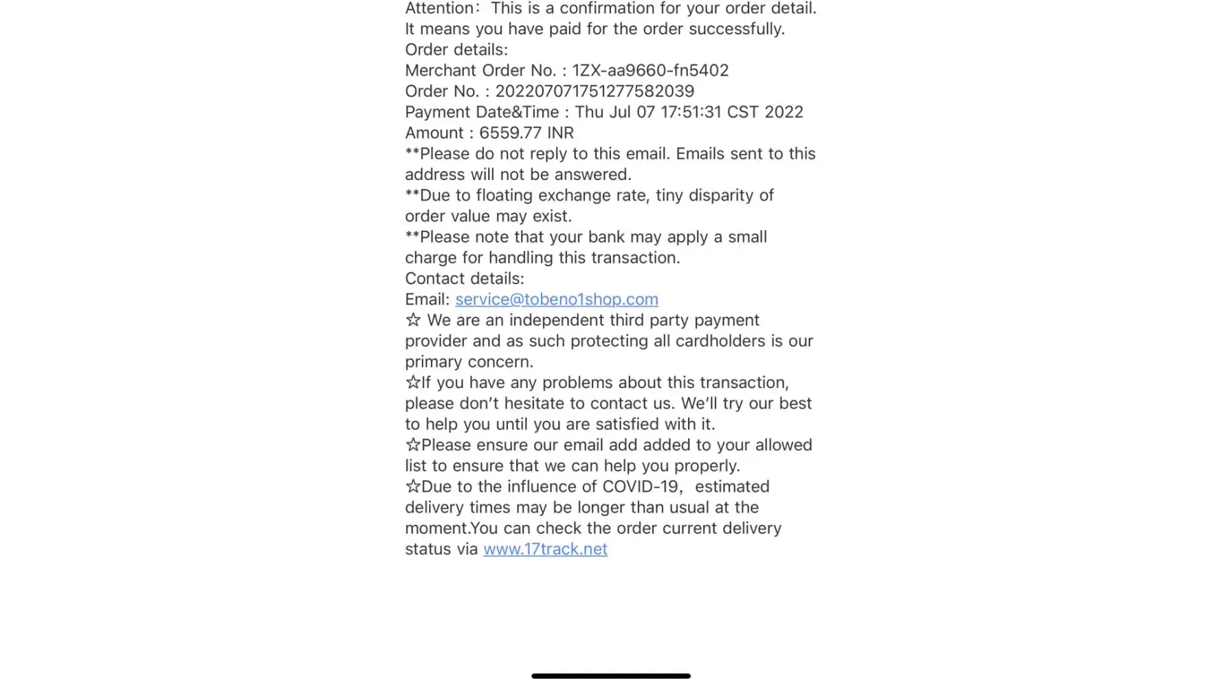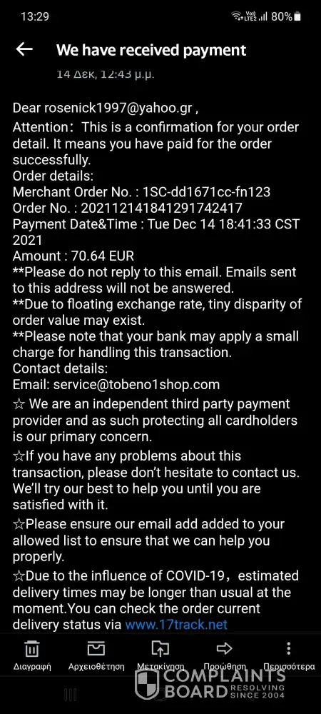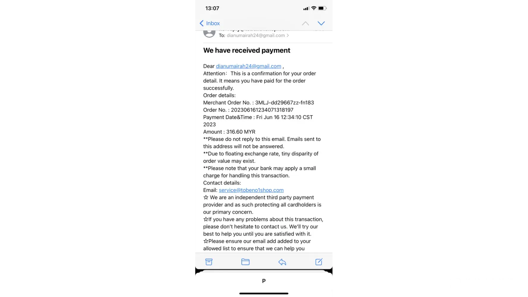 And done payment .. I received mail from tobeno1shop
