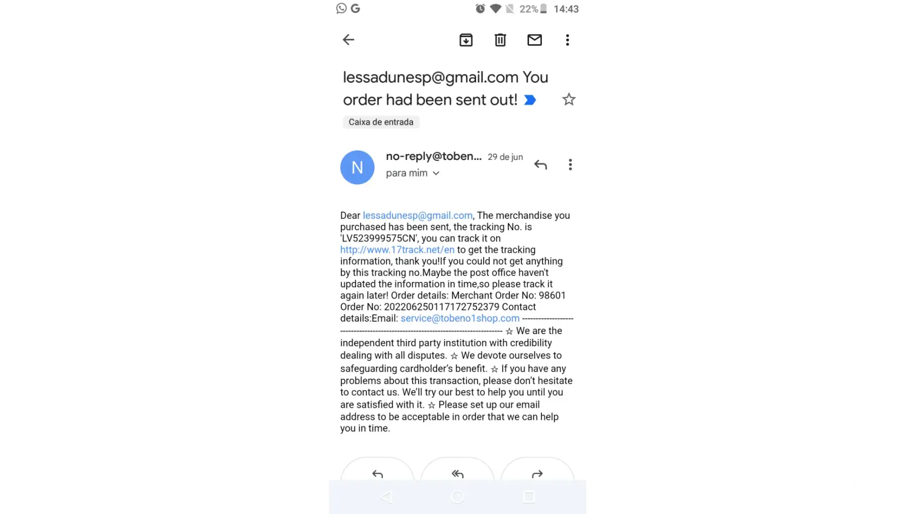 Got other pair of shoes, service@tobeno1shop@gmail.com did not reply yet. What could i do?