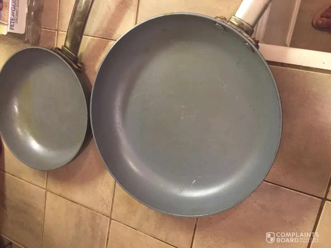 Purchased Todd English Green Pans and they are HORRIBLE! I have called and was told to return the products with a prepaid UPS label and a refund would be issued. I have been tracking the package which was received over 2 weeks ago. No refund yet. I sent an email to the Customer Service Representative who assisted me about 4 days ago and she has not yet responded. I have called their Customer Service 4 times now and have always been on hold a minimum of 30 minutes or more. I am writing this while I am on hold with them today and have been for 35 minutes so far. I have learned my lesson and will not ever use their products again. I have better things to do than sit on hold with a company that sells such bad products and provides such TERRIBLE Customer Service. I will be contacting HSN as they aired the product and advise them of this problem. Hopefully they can help, or they ALSO will lose me as a customer.