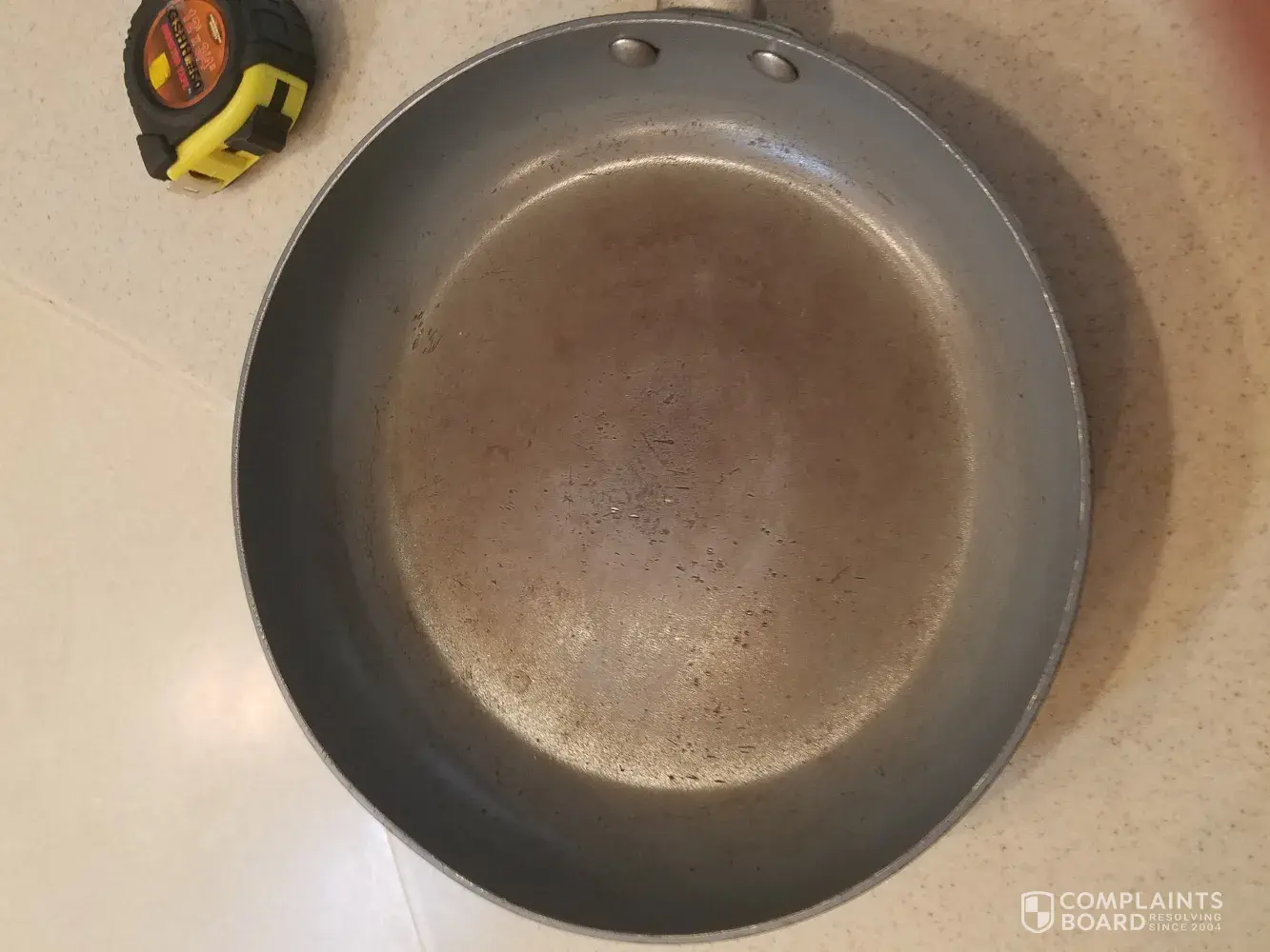 I have a 12" frying pan. I followed all directions, was careful in cleaning, but, as with all "non-stick" pans, eventually things start to stick. I did not use metal utensils, harsh abrasive cleaners or scrub with rough materials. I like the way the pan cooks and it's weight, as I have arthritis and it's not too heavy for me to lift (while empty). HOWEVER, I have burned a few things and recently used it with oil that absolutely turned the whole pan black. I almost threw it away but after 3 days of soaking, washing, scrubbing, and using Easy Off Oven Cleaner, I got it to be clean again and "re-seasoned" it and now it's OK to use. The company should advise people what to do when the non-stick finally wears off. If you use it a lot (as I did) that is inevitable. It's disgusting to think of all these frying pans in land fills for the next 1000 years. Mr. English is a multi-millionaire. You would think he could do a better job in seeing that his products can be used for a long time. Write to this company. Demand better.