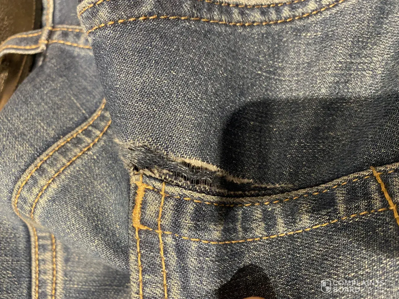 I toke the jean on for a meeting and one of my colleagues said that a rip was starting at the back pocket. I anly use them for daily work in the office so it is very strange