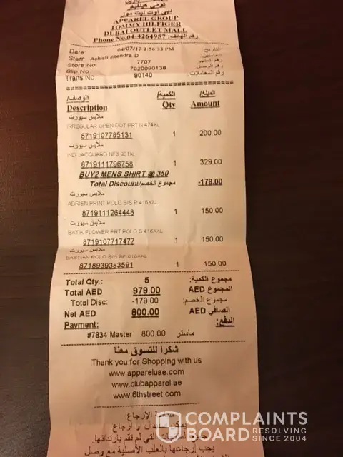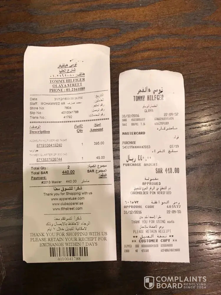 We have purchased men's shorts from Tommy Hilfiger outlet in Dubai outlet Mall on 4th July 2017.