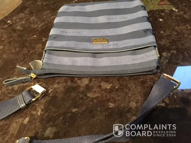 I bought a handbag a few month ago and it was not used very often since I put it in the office and used for lunch time shopping sometimes. Recently I used it at shopping, the bag just slipped from my shoulder to floor. I found one side was broken and another side was near broken. I am wondering how Tommy product has such a bad quality?! By the way, I cannot find the receipt. you can see from the appearance, the bag itself looks new, but the