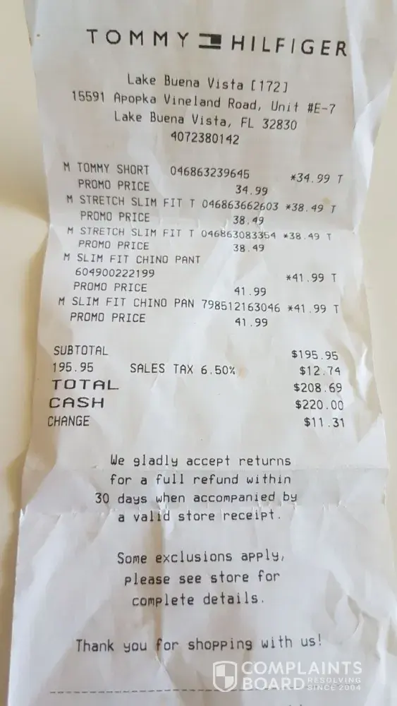 Tommy Hilfiger I am complaining about service