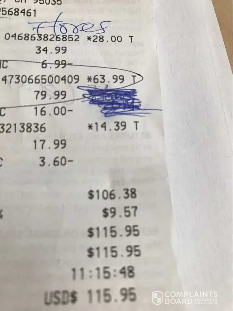 Verified customer This complaint was posted by a verified customer. Learn more