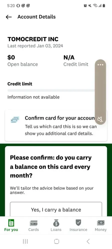 Tomo credit card is a not a legitimate company and the software is flawed for analyzing accounts