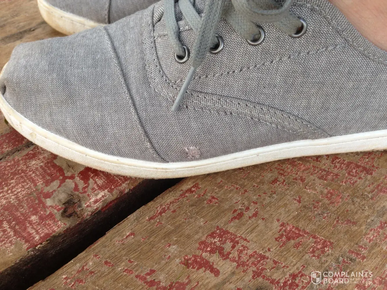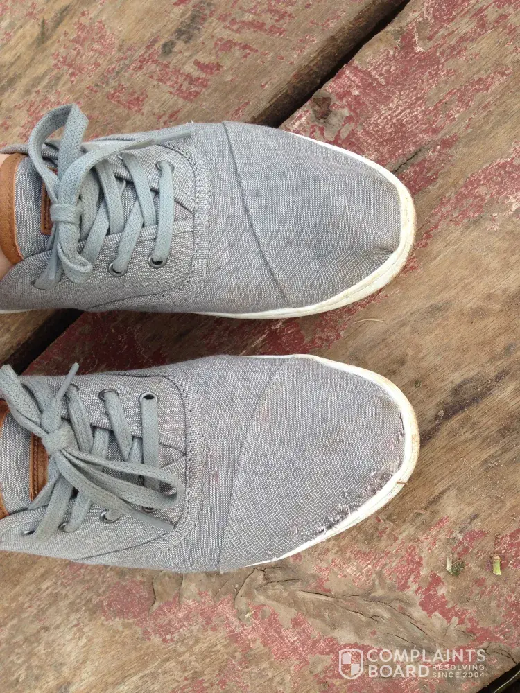 Hello! I would like to submit a complaint about a recent Toms product that I purchased. I purchased a pair of Toms shoes at a Journeys in MA, USA on Sept. 12 2017. I paid in cash, so I do not recall the exact price, but it was about $45-60 (shoes were on sale).