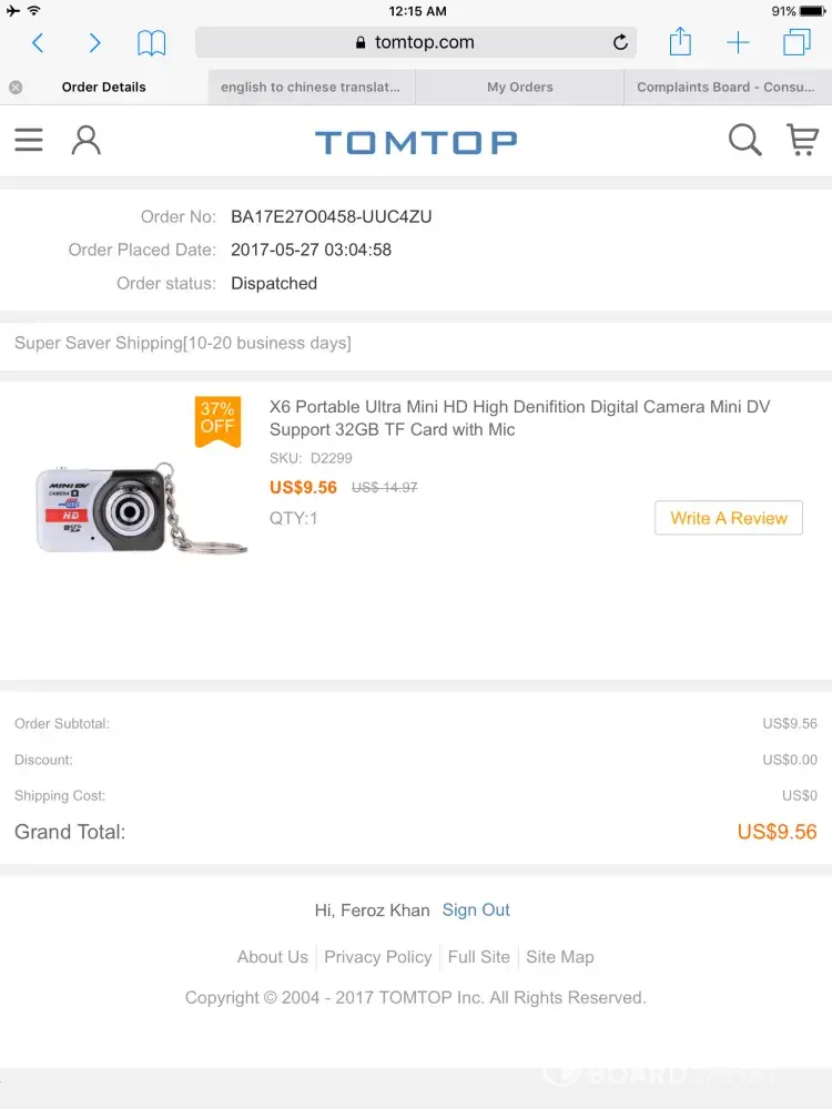 You can find so many victims of TOMTOP scamming by simply search Web by words “TOMTOP SCAMâ€.