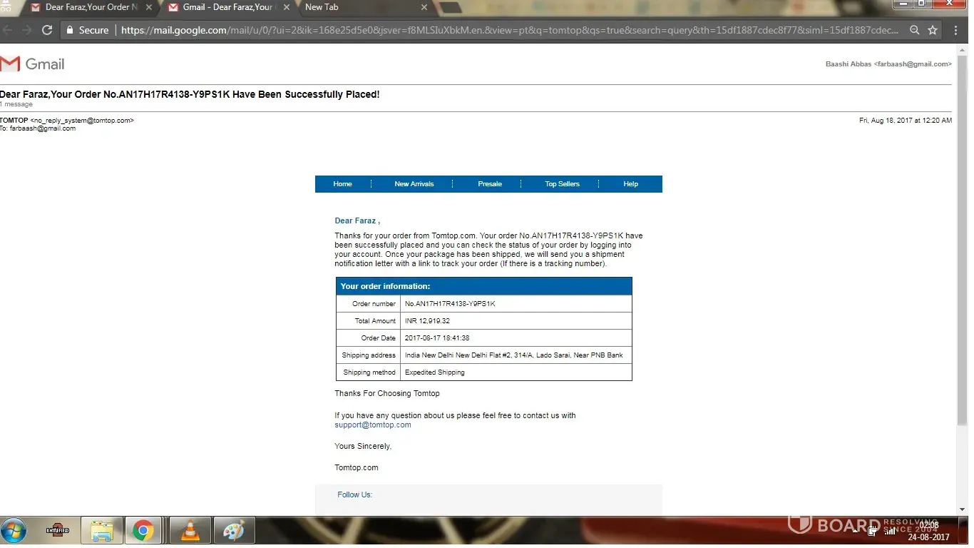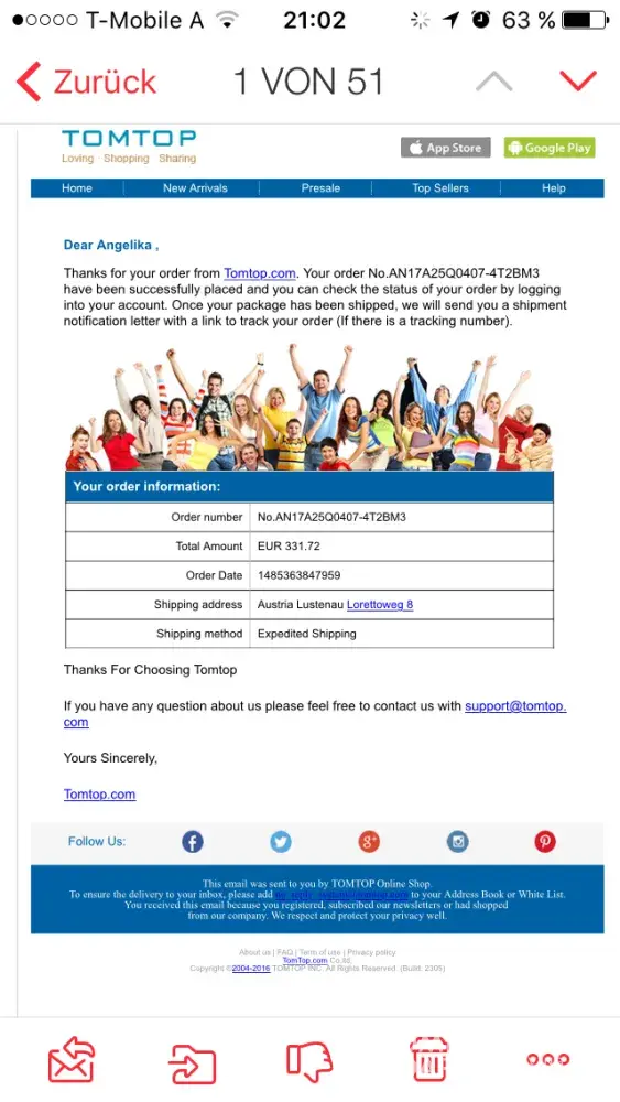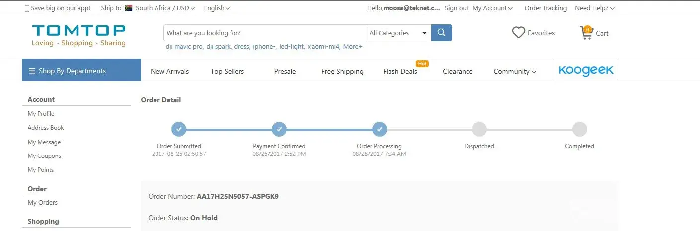 TomTop Group order (an17h17r4138-y9ps1k) stuck in "processing".