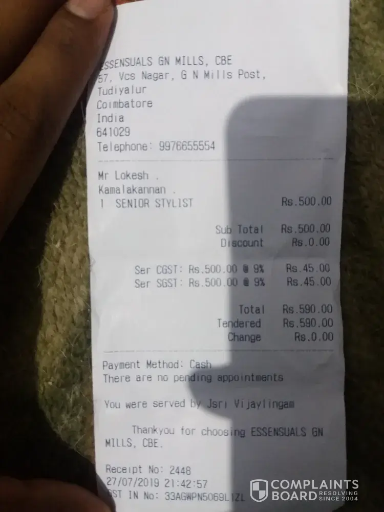 I had my hair cut today and it was a normal school boy hair cut and I did not ask for any styles. They charged me Rs. 590. When I entered the receptionist said oly experienced person is there and I asked does it make any difference and she kept silent and did not inform me about the price.