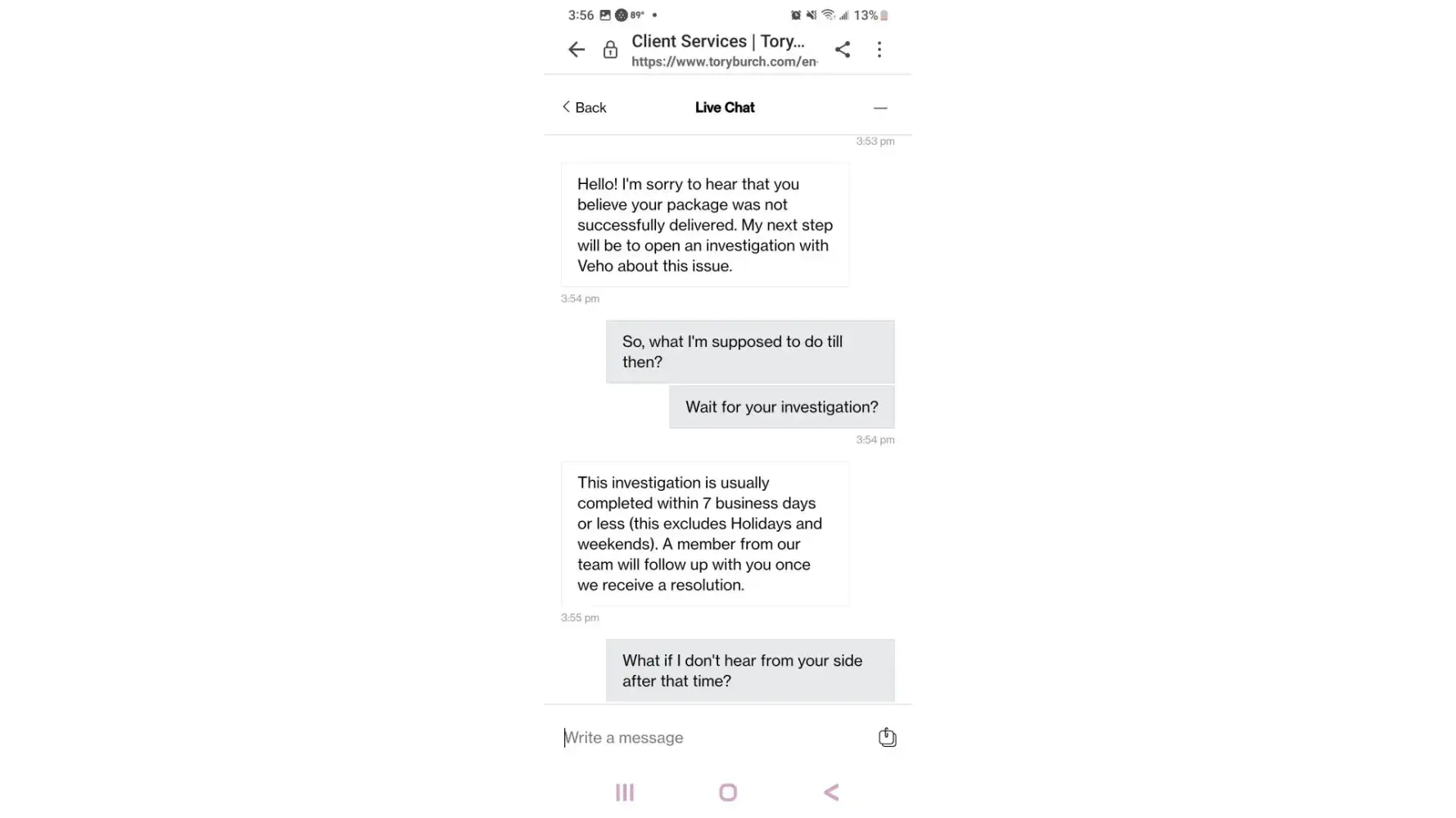 - Maha, Tory Burch Client Specialist, replied that my case is forwarded to FedEx cross border to make a claim