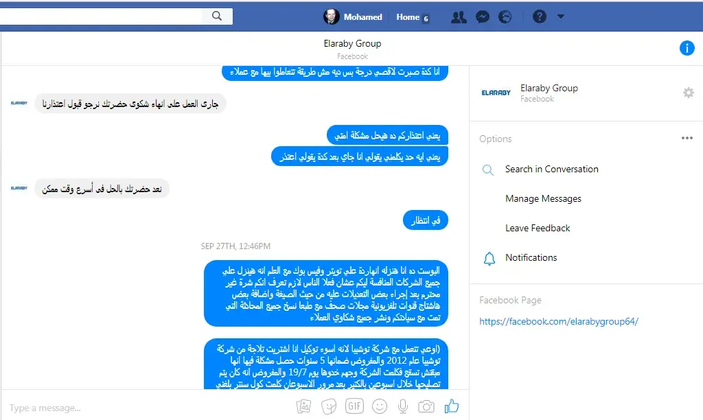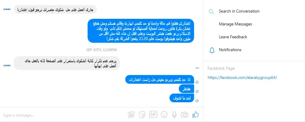 I share my probleme on facebook as below and no one answer me from elaraby :-