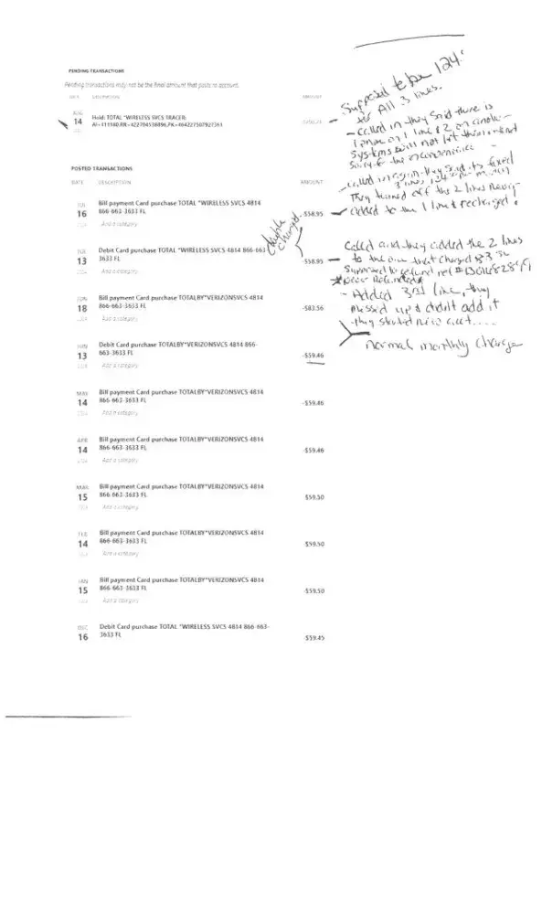 We have had Total Wireless for years and been very happy with them until our recent interaction in June 2024. Since then I have spent many many hours on chats and the phone each time being told the issue was fixed... Here is the issue. On June 13th 2024 we paid our normal 59.46 2 line phone bill. On June 18th (5 days later) we added a new line so the old...