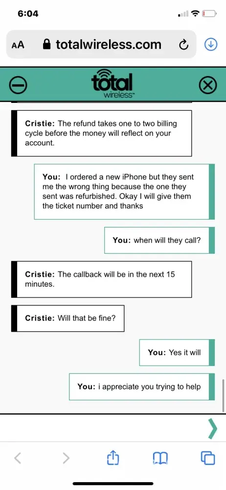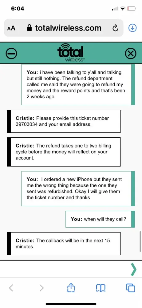 Hi Catherine Bozarth. We really do apologize for the inconvenience that this has caused you. This is not the experience we want our customers to feel. Give us a chance to fully evaluate your situation and help you out. For further assistance you can chat with us via this link Give us a chance to fully evaluate your situation and help you out. For further assistance you can chat with us via this link https://www.totalwireless.com/contactus, or by calling [protected]. For your convenience, our representatives are available Monday-Sunday from 8:00 AM to 11:45 PM EST. You can also use our self-service menu by simply texting the word HELP to 611611.