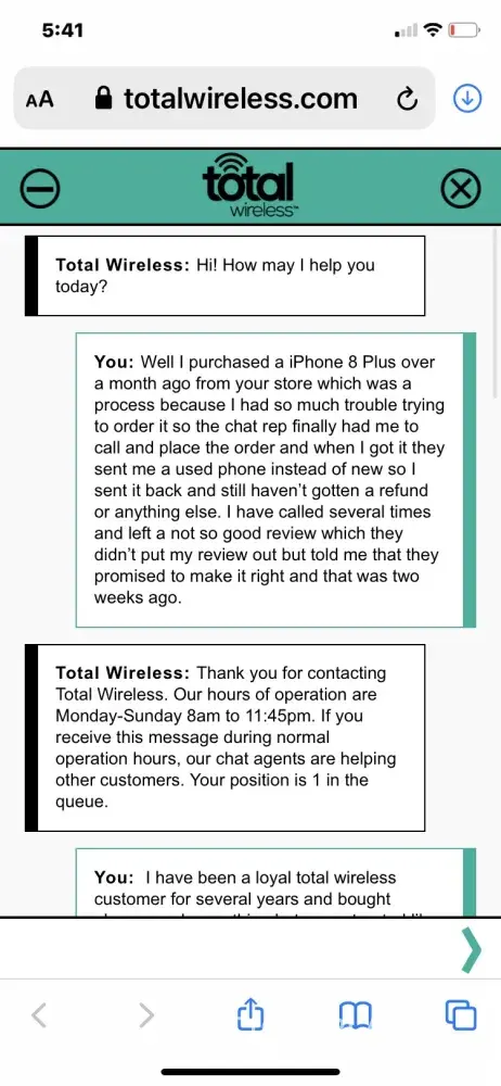 Hi PeacefulDT . Please know that it is never our goal to let you experience such troubles. Our sincere apologies for the problems that you went through with our service. We really do understand your frustration, and we are doing our best to provide quality service all throughout the years. Give us a chance to fully evaluate your situation and help you out. For further assistance you can chat with us via this link https://www.totalwireless.com/contactus, or by calling [protected]. For your convenience, our representatives are available Monday-Sunday from 8:00 AM to 11:45 PM EST. You can also use our self-service menu by simply texting the word HELP to 611611.