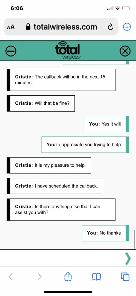 This is scripted. Typical of Total by Verizon. I hope Total by Verizon starts doing and providing the service we pay for and stop playing with people's emotions and our money!