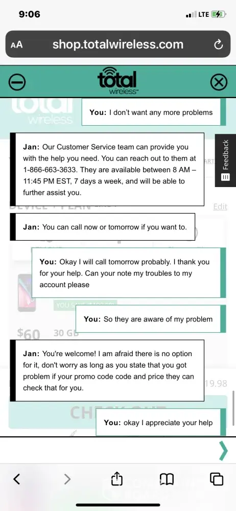 Hi TJone73. Please accept our deepest apology for this experience. We do not want our customers to encounter issues about the service we offer. Don't you worry. We will take further steps to remedy this problem as soon as possible. For further assistance, please chat with us via this link https://www.totalbyverizon.com/support/contact-us, or call us at [protected]. For your convenience, our representatives are available Monday-Sunday from 8:00 AM to 11:45 PM EST. You can also use our self-service menu by simply texting the word HELP to 611611.