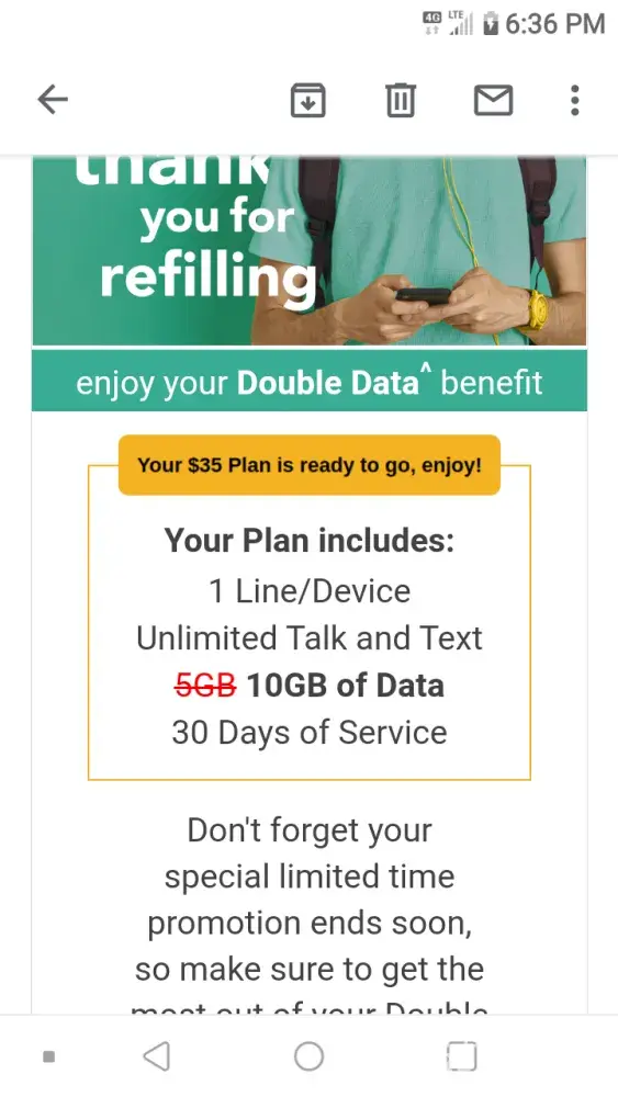 I refilled my plan a $35 for unlimited text and talk 5 GBS in two days it said my data was low my high speed data so I purchased a $10 add-on for a extra 5 GBS today August 30th 2020 I have to point something gb's left I have a email were it should have been instead of 5 GB is it should have been 10 g d's for a $35 plan cuz he gave me the double the plan which I did not get customer service is very rude they disconnected deactivated my phone then activated it back so here it is altogether in 3 days from the 27th to the 30th I have paid a total of $45 from what where is my high-speed data and then I've been receiving my rewards points and now all of a sudden I have to wait 60 days for them to post to my account not happy at all