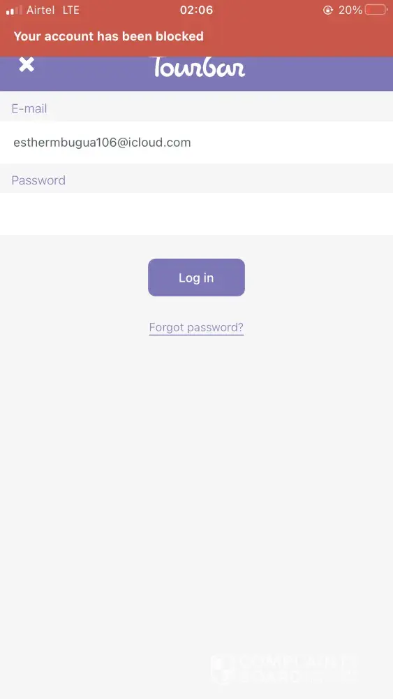I'd like to raise a complaint about Tourbar's policy and non-existing customer service.
