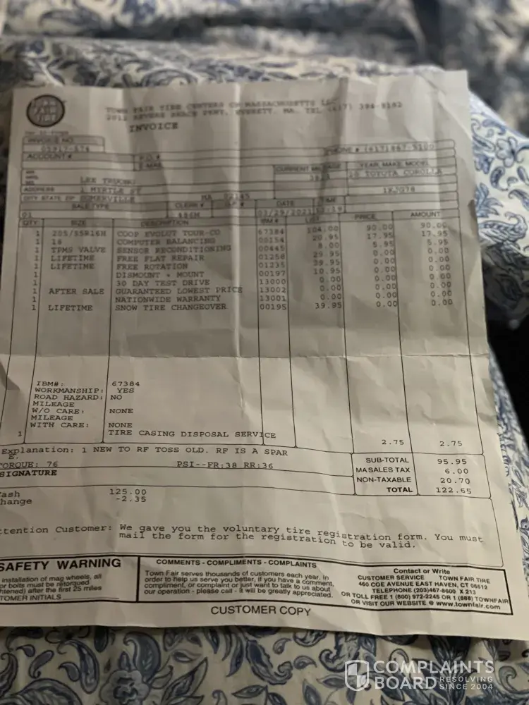 Town Fair Tire Centers I am complaining about the service at Town Fair tire in Brockton Massachusetts