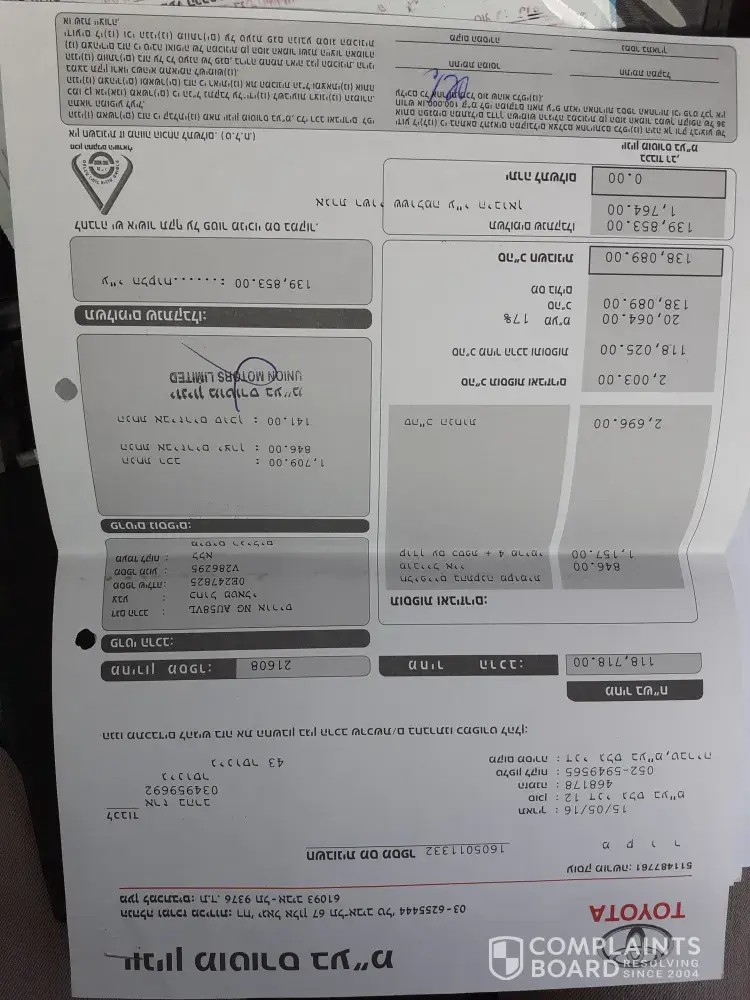I have a complaint against Toyota company in Saudi Arabia, Eastern Province, Dammam, Branch in King Saud Street.